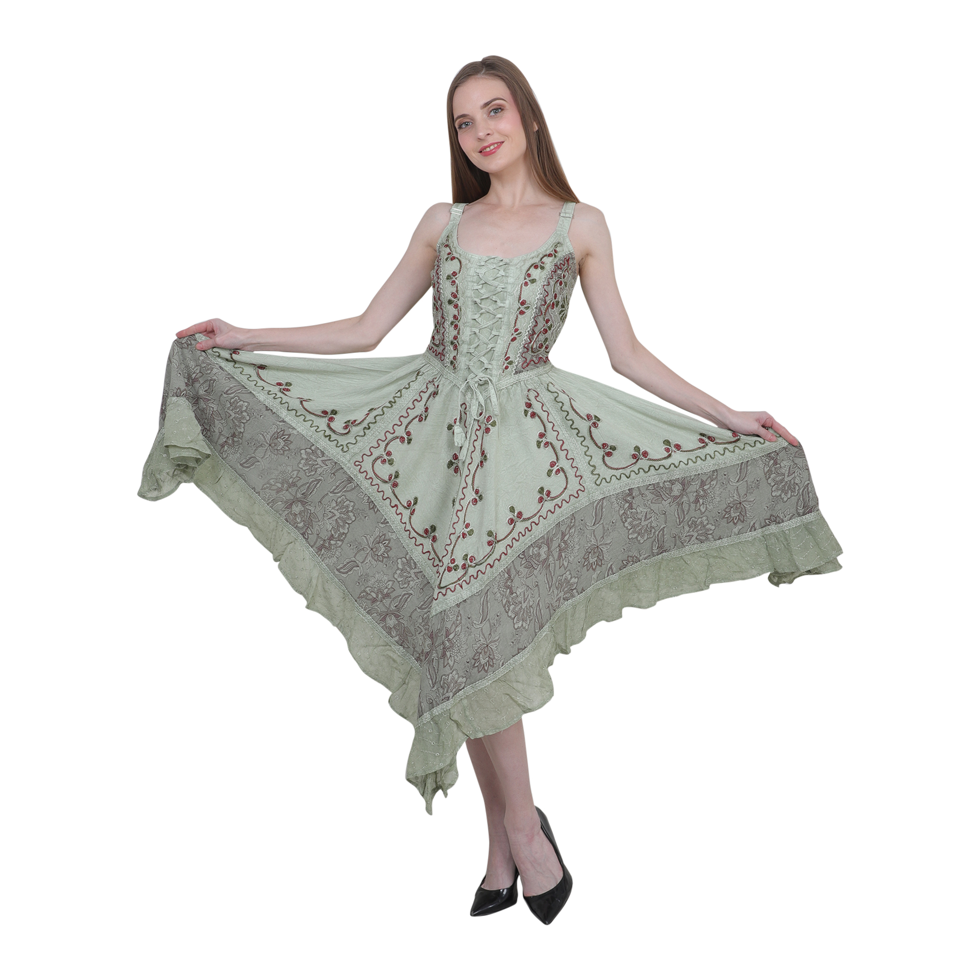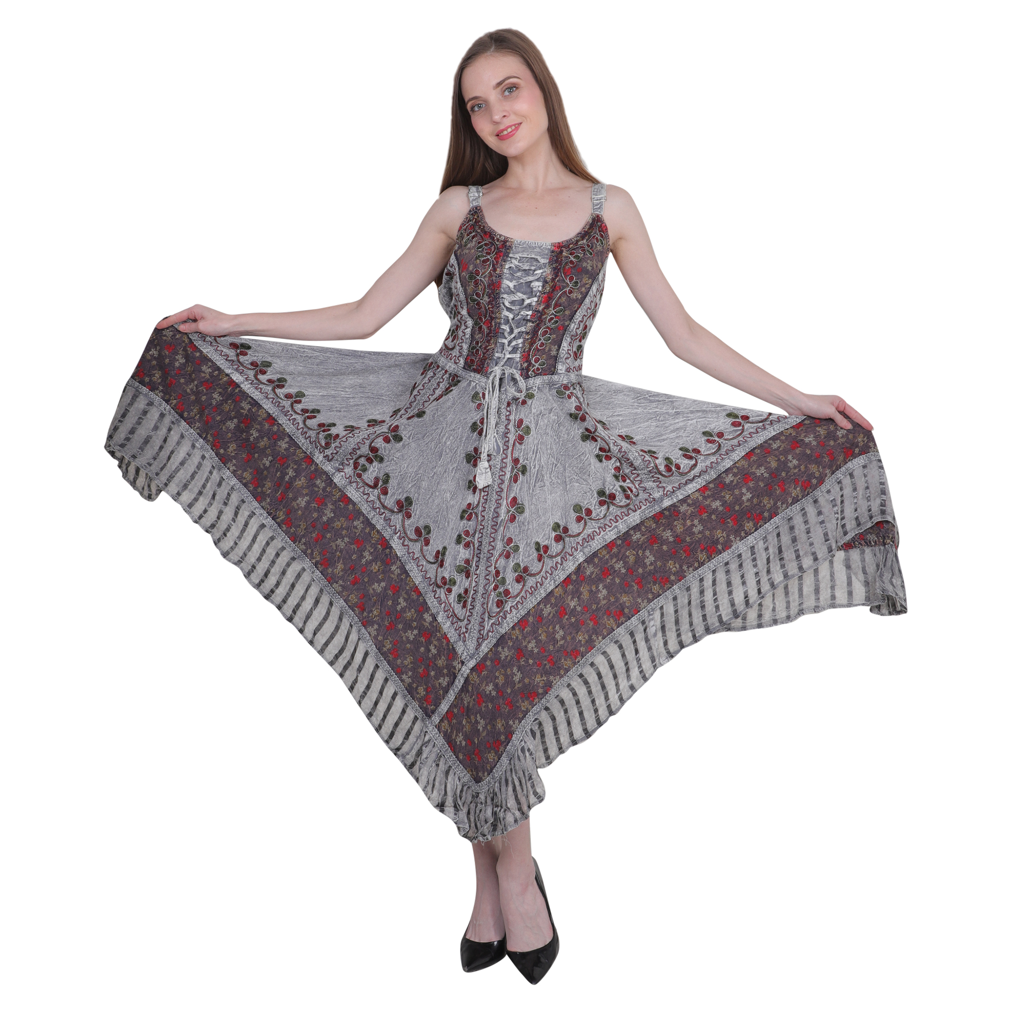 Introducing our stunning dress with hand embroidery, designed to bring timeless elegance and comfort to every wardrobe! This versatile dress is one-size-fits-all, making it a perfect fit for various body types. It features adjustable shoulder straps, allowing you to customize the fit to your liking. The back is crafted with a stretchy, elastic fabric, ensuring a comfortable and secure fit throughout the day.